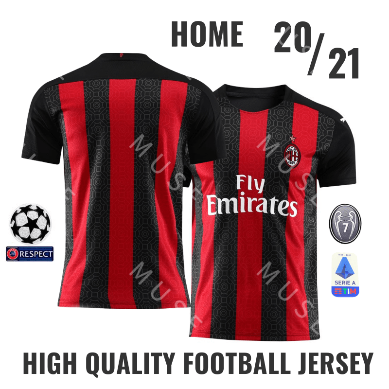 Top Quality Ac Milan Thai Version 2020 2021 Ac Milan Home Jersey Add Name Patch S 2xl Shopee Singapore