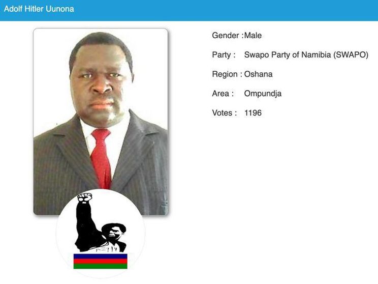 Rt On Twitter Adolf Hitler Has Won A Seat In A Namibian Election Yes You Read That Right The Politician S Name Really Is Adolf Hitler Adolf Hitler Uunona To Be Exact