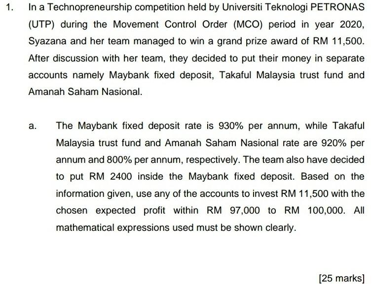 Solved Question 1 Sammy Invested Rm8 000 Into Amanah Saha Chegg Com