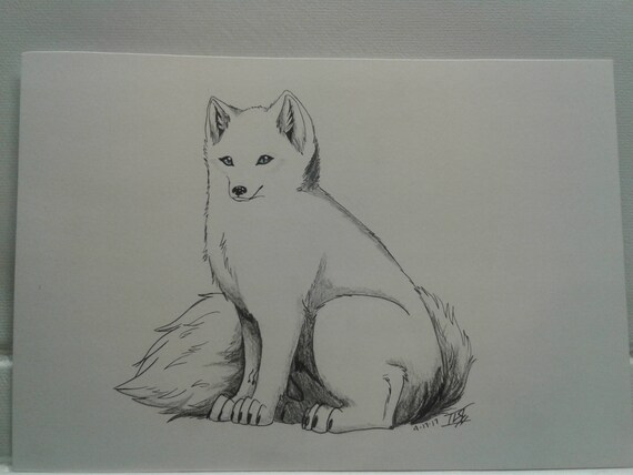 Arctic Fox Nursery Art White Fox Pencil Drawing Gender Etsy